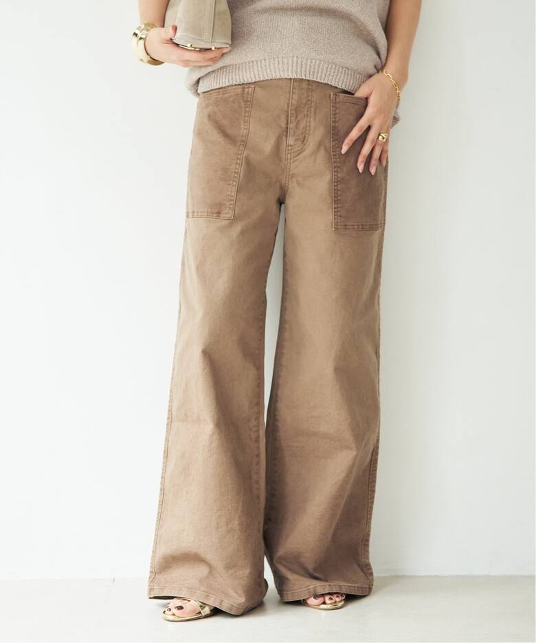 お尻大き目の体型です。36でウエストは余裕があるけれど腰回りとお尻周りはジャストサイズといった感じで、38を選べばsnapの162㎝のスタッフさんのような緩さが出たと思いますが、スッキリ穿きたかったのと、穿いてる内に馴染みそうだったので(ストレッチは効いています)、36を購入しました。 最初股上が深そうに見えたので、「お腹ぽっこりになっちゃうかな~」と思ったら、全然大丈夫でした。 また、普段ボトムスでベージュ系は選ばないのですが(膨張色なので太って見えちゃうかなと)、カーキが少し混ざったようなベージュより濃いめの色味のため、あまり気になりませんでした。 秋口にも使えそうなので、ブーツに合わせで穿きたいなと思います。入荷数が少なかったようなので、購入出来て良かったです。