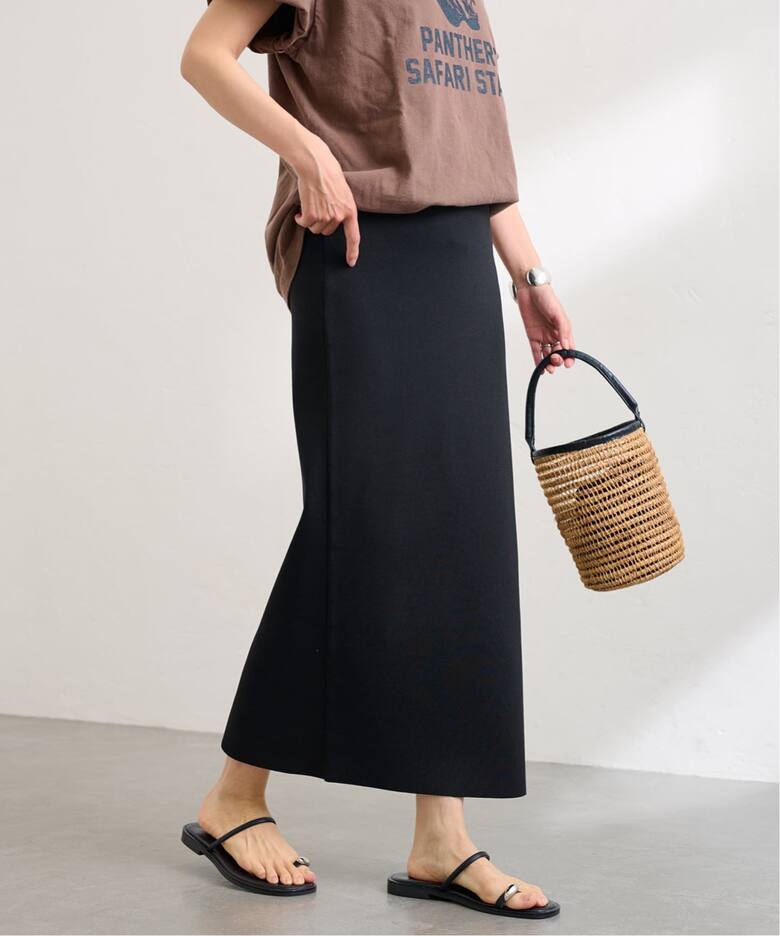 この手のタイトスカートは大好きで、数年前に購入したドゥーのものとプラージュのものがまだ現役で活躍しています。ただ、どちらも「ここが惜しい」という点がひとつだけあって、自分的100点を求めてつい日常的に探してしまう悪いクセ(笑)。こちらは見事に100点でした!重さがあるのでストンと落ち感も出ますし、肌ざわりはサラっとしてるけど、ほどよい厚みがあるのでタイツをはけば冬でもいけそう。私はウエスト太め&腰張りですが、サイズ感はゆったりめだと思いました。何なら36でもいけたかも。でも丈がちょうどよかったので、38で良しとします。