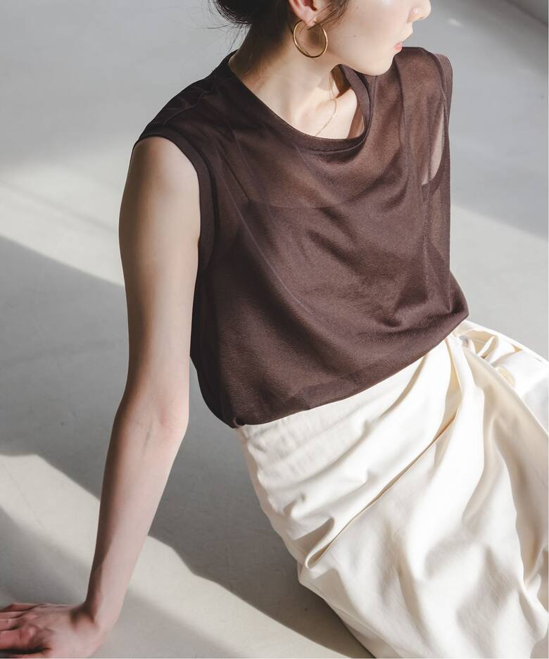 素敵なブラウンのお色と透け感がとても上品でデニムに合わせても少し上品に、タイトスカートに合わせて綺麗めに、キャミワンピースに合わせて抜け感があってとても重宝したいます。 腕周りも意外に細く見えて満足しています。