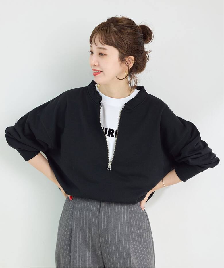 ハーフジップのタイプは持っていなくて惹かれました。店員さんの着用イメージでブルーシャツと合わせていたのがかわいくて、そちらも即購入しました。色んなスタイリングを楽しめそうです。