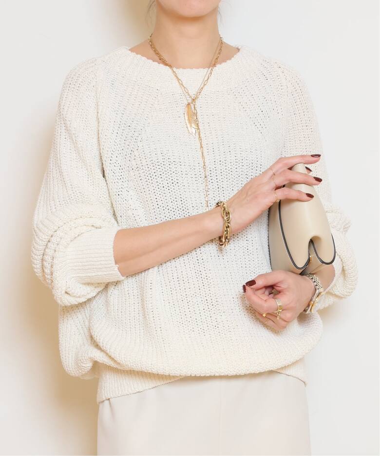最近はdinerなどのやや体に沿うラインのものは1枚では余り着なくなりました。端境期に1枚で着れてゆるっと頑張りすぎずに抜け感出るこちら、すごく素敵です。ドゥで売り切れててmuseでベージュを購入できましたが同一と記載されていましたが重さが若干違いますね。ドゥのものと比べてはないので定かではないですが届いたものを測ったら約600gでした。ゆるっと感は欲しいですがあまりダボダボ、ズルズル下がってきて欲しくないのと暑苦しいのは嫌なので結果museのこちらの方で良かったと思います。色味は同じですね、ゴールドが映えるベージュでeasyのブラウンのパンツと良く合い大変気に入りました。