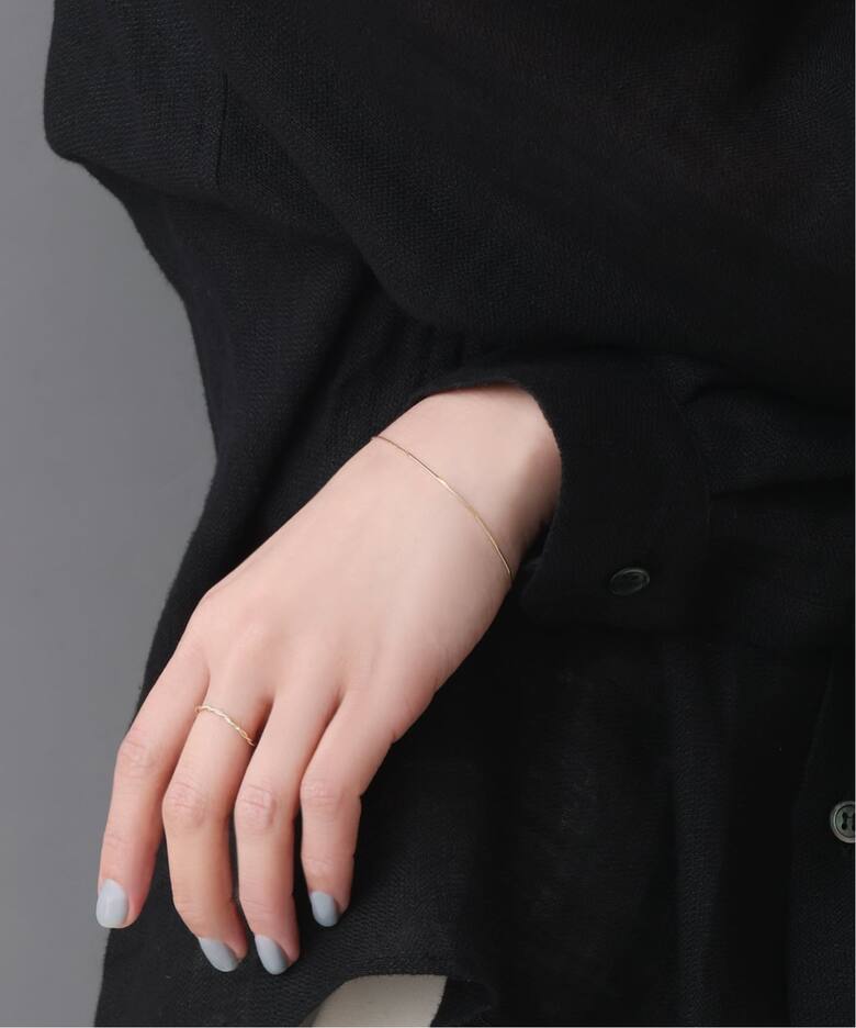 ベイクルーズではお洋服しか購入したことなく、今回初めてアクセサリーを購入しました。何気ないデザインですがきらりとゴールドが輝いて素敵です。他の方が金色のテープのよう、と表現されてましたが、まさにそんな雰囲気です。 18Kと比べるとゴールドの色味が違うので重ねつけは同じ10Kと合わせるのが良いですね。