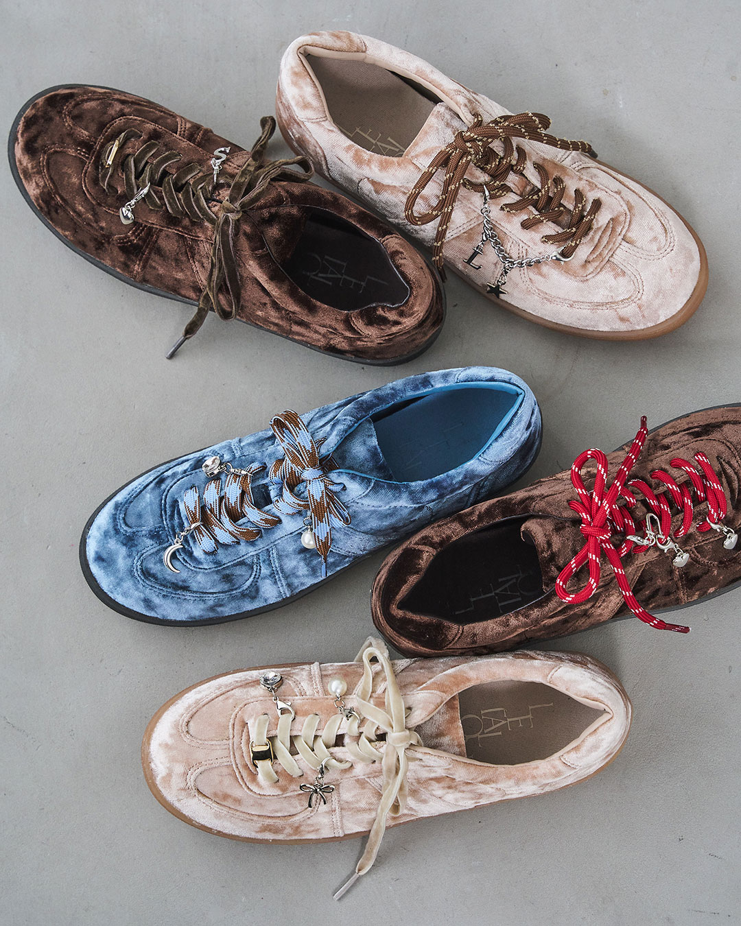 シューレース20種類、チャーム21種類の中からお好きな4つをお選びいただけます。