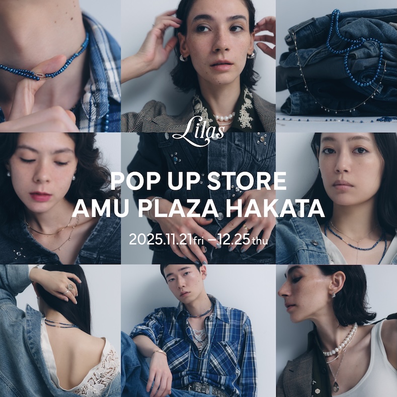 11月21日(金)〜12月25日(木)の期間限定で、ジュエリーブランド「Lilas」のPOP UP STOREがJR博多シティ アミュプラザ博多にオープン!Lilasが誇るインディゴパールや2ndブランド「SAMH by LILAS」のストーンリングなど、人気のアイテムを豊富に揃えました。
