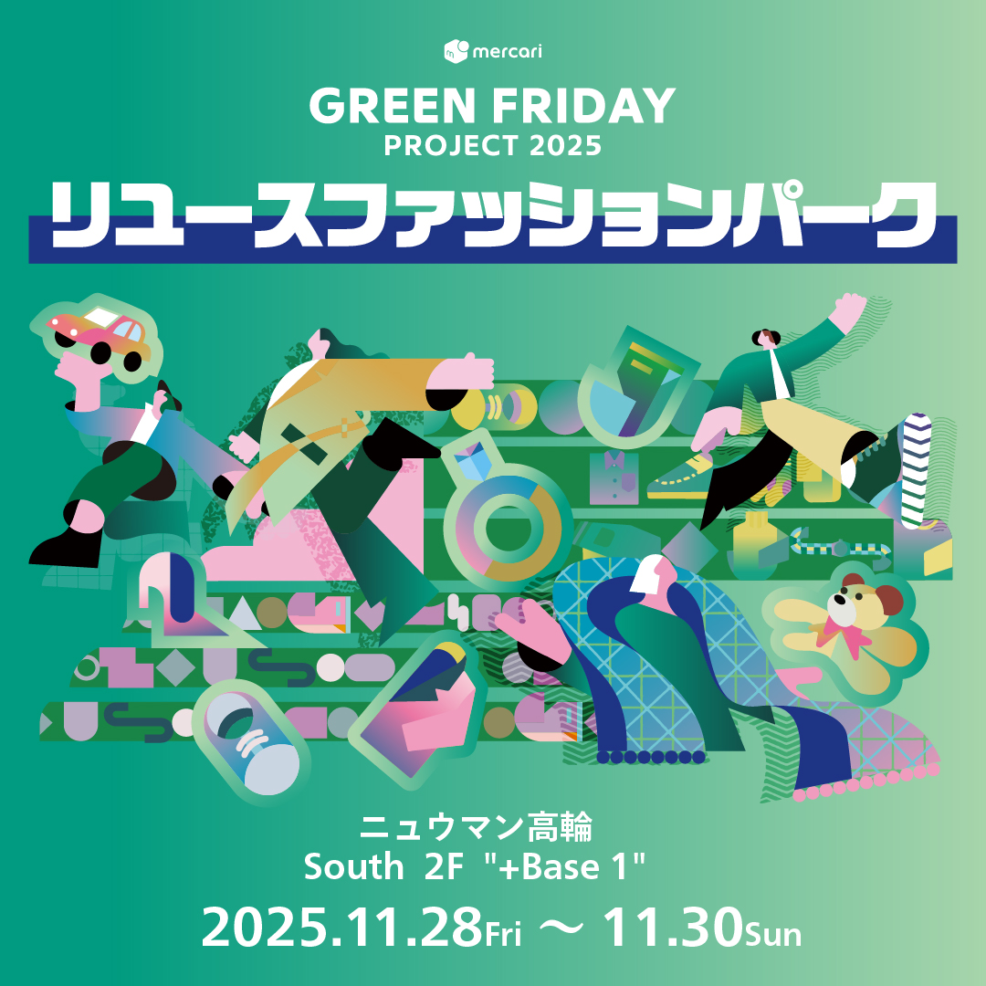 大規模セールのブラックフライデーと同日にサステナブルな消費を啓発する欧米発のムーブメント「グリーンフライデー※1」に合わせ、11/28(金)~11/30(日)の三日間、Newoman高輪にて「メルカリ グリーンフライデープロジェクト2025 〜リユースファッションパーク〜」が開催されます!