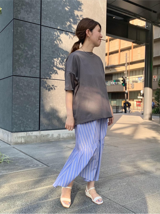 アクセサリーが映えますね!張りのあるシャツ生地なのでカラーの付いているデザインですが甘くなりすぎないのも他のお洋服と差を付けられるポイントです!コットン100%の生地は、今の時期はもちろん羽織りやインナーを 替えて頂くだけでシーズンレスでお召頂けます。是非店頭でお試しください!!合わせたストライプのパンツはショート丈でスタイルアップを!こちらのパンツは、さらっとした素材で肌あたりが良く暑い夏でも快適にお召頂けそうです。裏地も付いているので屋外に出ても透け感も気にならなかったです。ショートパンツ初心者の方でも取り入れやすい膝丈ですので是非この夏チャレンジしてみてください♪アクセサリーは完売必至の【AFTERSHAVECLUB】のネックレスを ゴールドのアクセサリーとレイヤードして付けてみました。メッキ加工を施さずポリッシングのみで仕上げており、華奢なデザインながらもしっかり存在感のあるネックレスです。いかがでしたでしょうか?いつものコーディネートをグレードアップさせてくれるアイテムばかりですので、是非これからの夏に向けて新しいお洋服でお洒落を楽しんでみてください! - CITYSHOP【BASERANGE/ベースレンジ】LAKE シャツ¥8,195(税込) 50%OFF