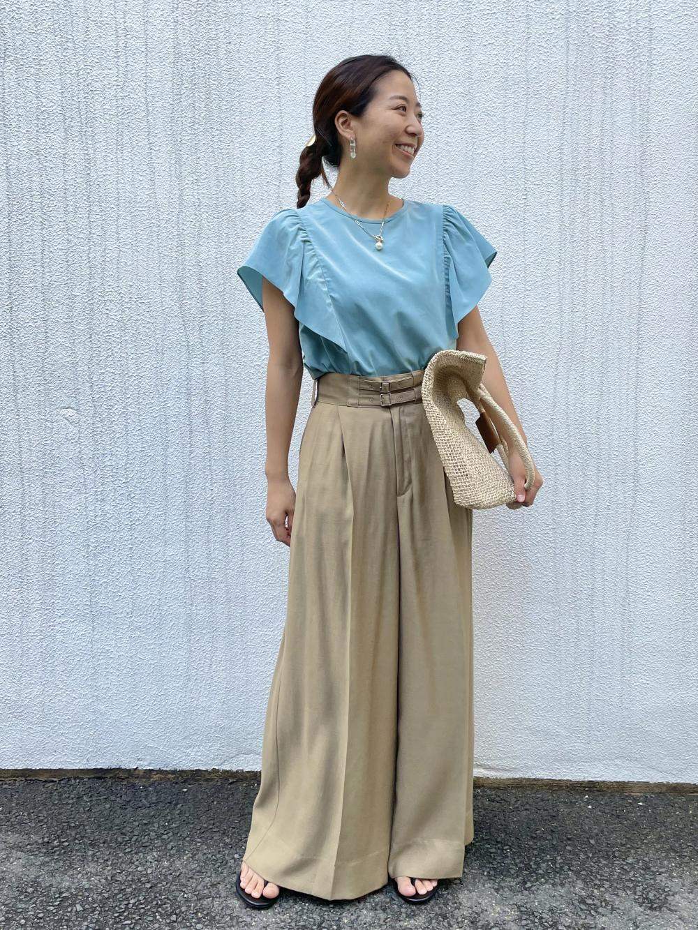 - リリーグリーンの色味が綺麗なカラーパンツで爽やかな印象と、