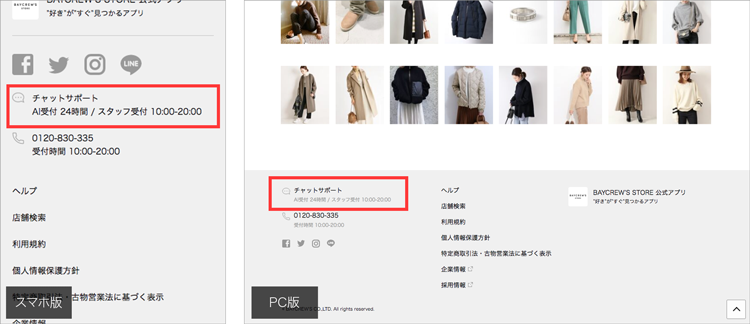 ※チャットサービスはアプリ版BAYCREW'S STOREでお使いになれません。