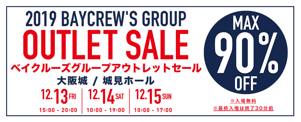 【EVENT】ベイクルーズグループアウトレットセール 大阪城/城見ホール 12/13(金)〜12/15(日)まで開催!